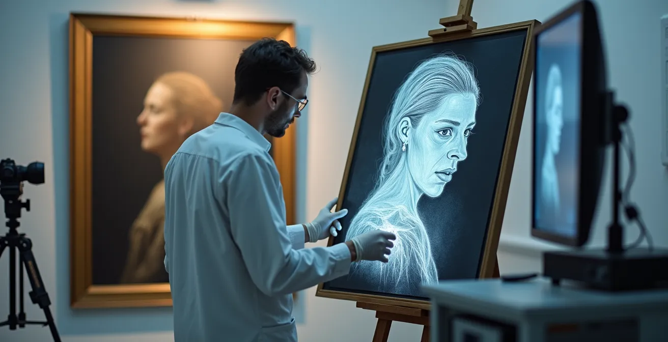 To the untrained eye, a painting is a finished, static object. But for an art historian or conservator, its surface is merely the final chapter of a story filled with edits, second thoughts, and abandoned ideas. The ability to read this hidden narrative is a fundamental skill, and Infrared Reflectography (IRR) is one of the most powerful tools for the job. It allows us to peer through layers of paint to reveal the artist’s original sketch, known as the underdrawing. These changes of mind, or pentimenti, are the ghostly traces of the creative process in action.